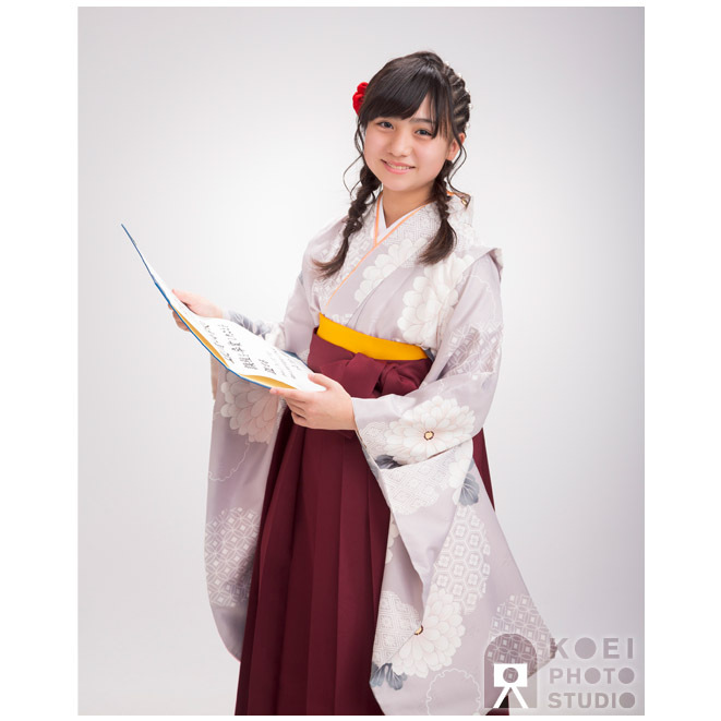 特に袴姿は、卒業式以外で着る機会がない装いです。スマホで撮影もいいですが、携帯写真だけではもったいない。迷いながら、楽しみながら選んだお好みの卒業衣裳を着て、せっかくですから卒業証書を手に写真スタジオで一生もののキレイな記念写真を残しませんか。家族写真もおススメです。